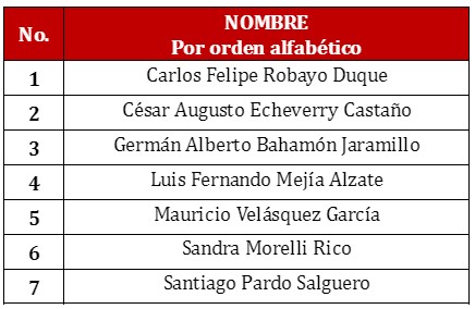 A continuación, se relacionan los nombres de los aspirantes seleccionados hoy por el Comité Directivo de la FNC:
